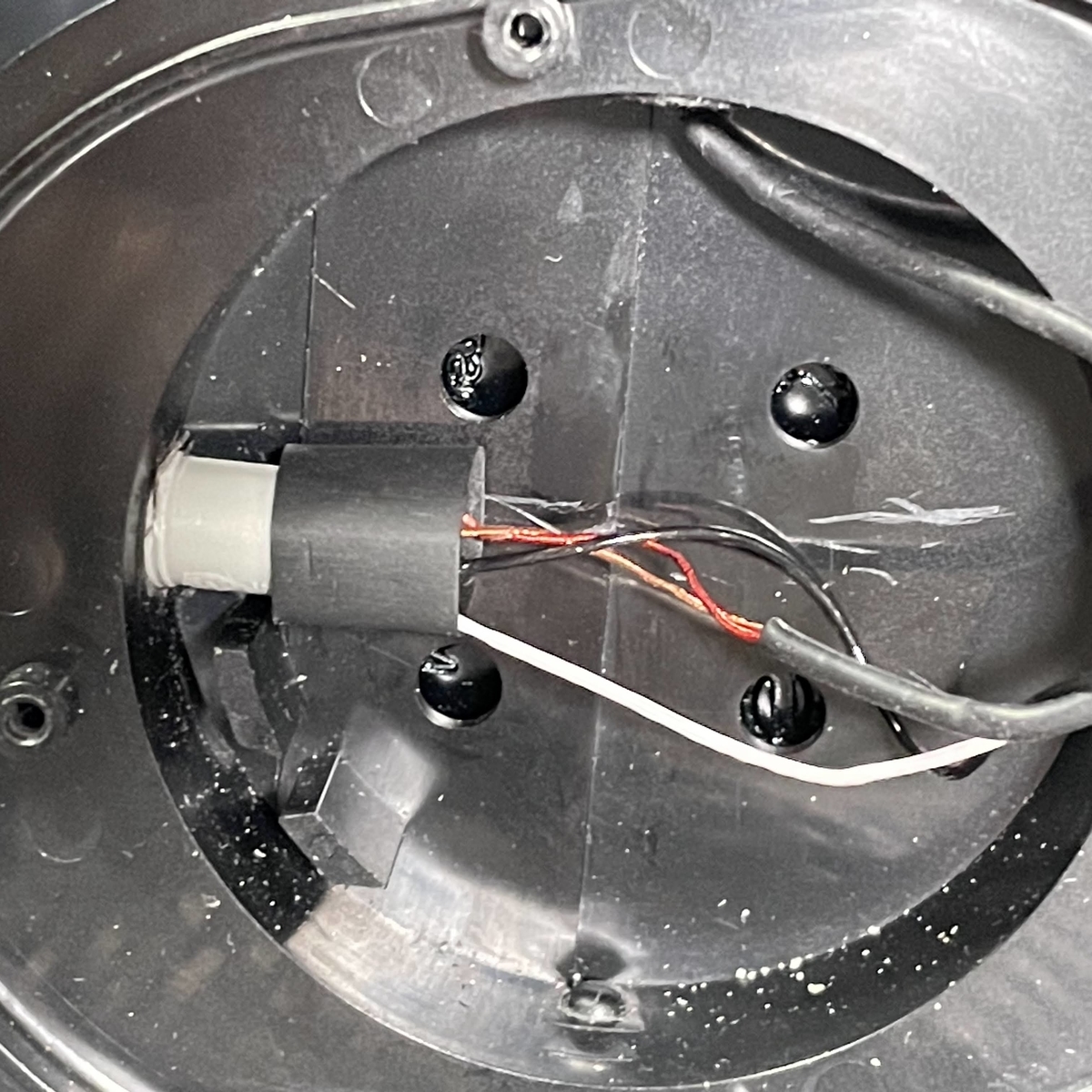 熱伸縮チューブを先に通して穴から外にケーブルを出します。